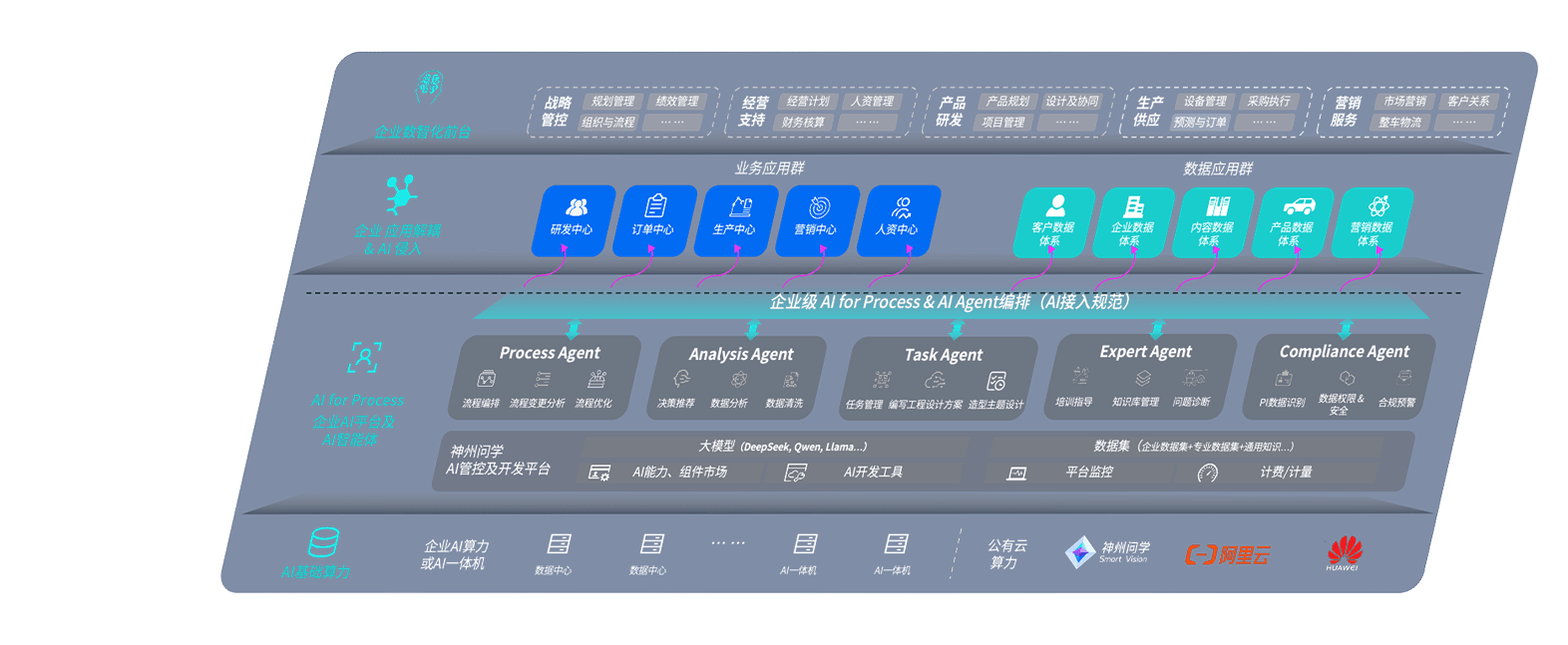 端到端的一站式AI工作空间深度融合了从企业战略规划到日常经营的全流程业务板块,,定向解决车企内部领域多、、、部门多、、链条长、、、、场景碎片化等难题,,,支持车企快速构建以AI为核心的生产力写作体系,,实现任务执行与AI能力的无缝集成与交互